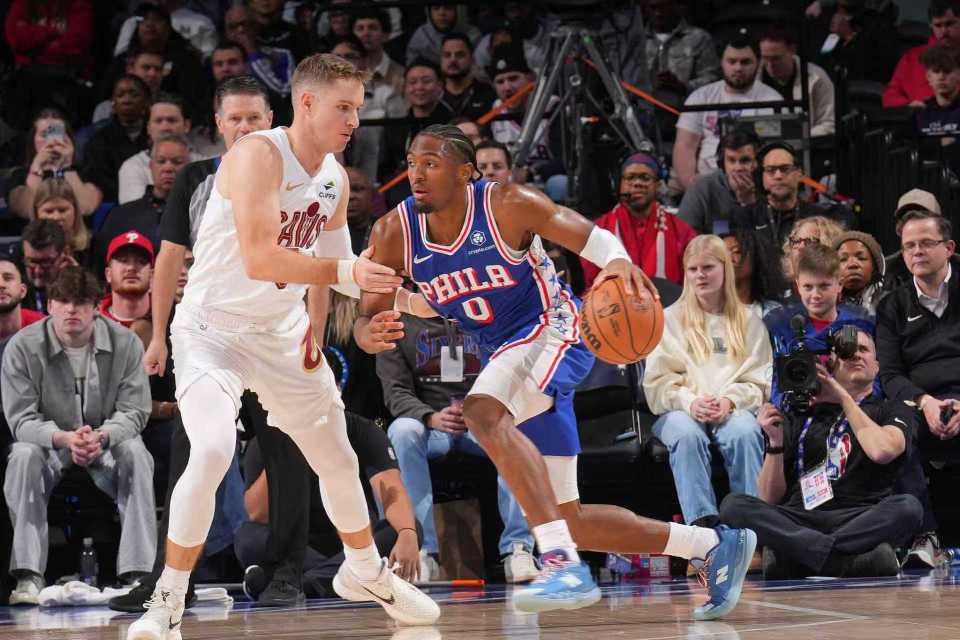 中场休息回来,骑士本场第二次单节得分30+,76人连续三节得分不足30分。骑士率先一波6-2攻势扩大17分优势,76人略有追分,骑士一波6-0攻势扩大75-53领先22分优势,76人主场爆发嘘声。76人立即一波10-0攻势追分,骑士连得4分,76人再追5分。骑士继续内外开花压制76人,骑士单节33-28净胜5分,巴洛背部挫伤退赛,三节结束骑士93-75领先76人。前三节比赛,骑士三分命中数13-10领先,米切尔28+7+6与加兰20+7扭伤脚踝返回更衣室,引领4人得分上双,恩比德20分6失误、乔治13分与马克西14分。