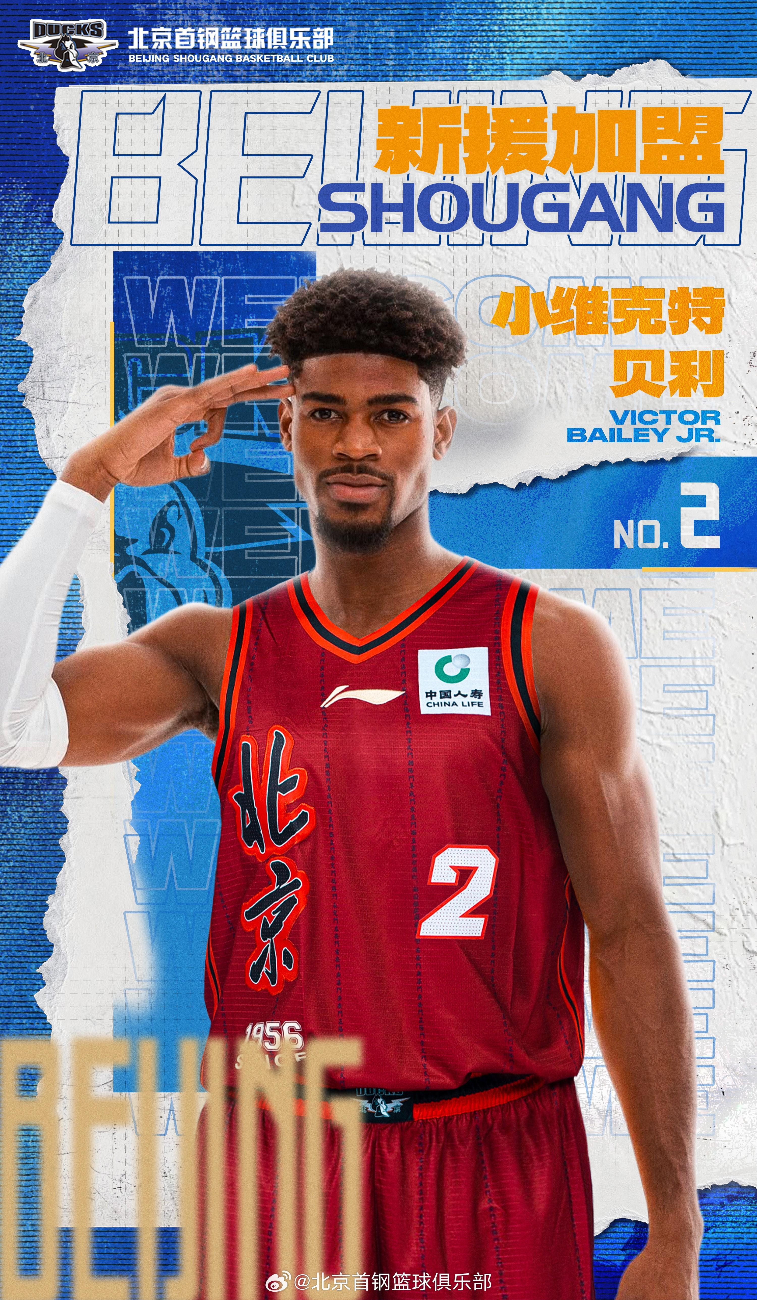 北京时间1月9日,北京首钢发布官方公告,宣布签下美籍后卫小维克特-贝利。